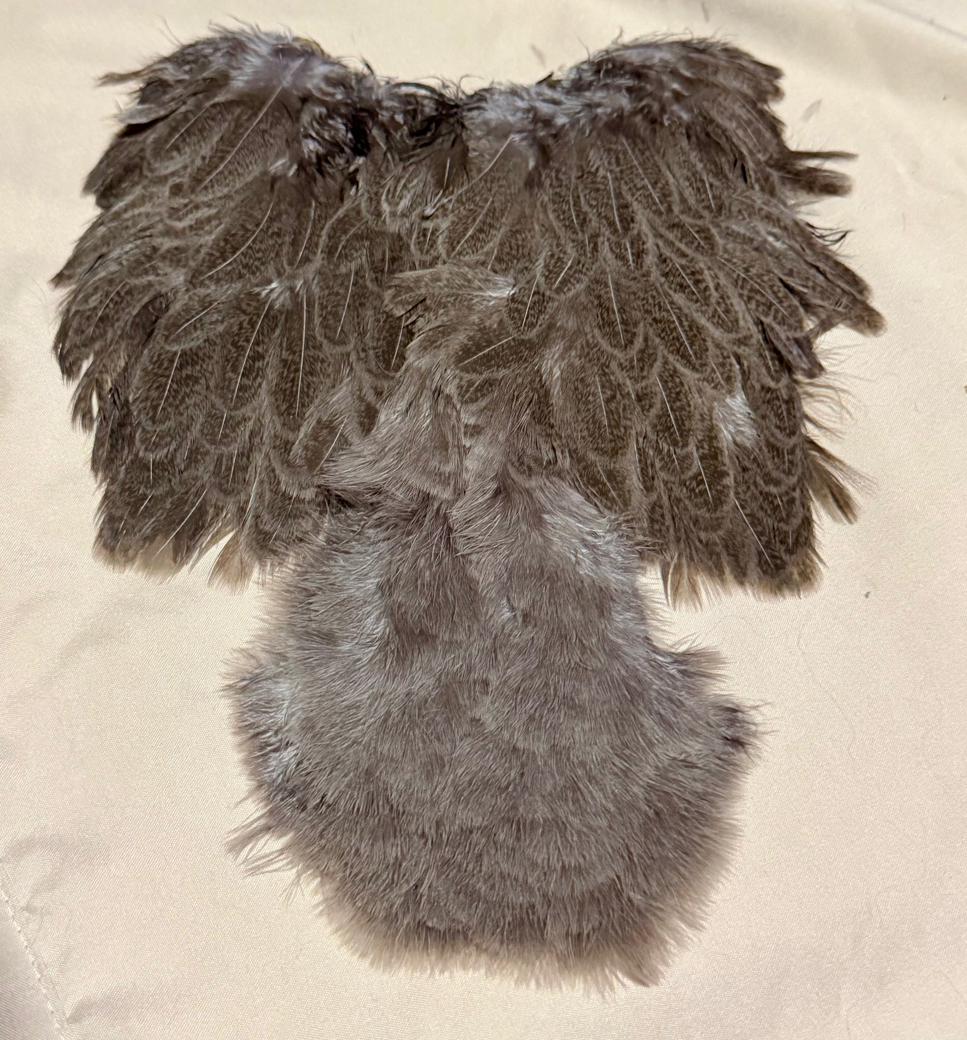 Whiting Farms Soft Hackle Brahma Hen Chickabou Pelt Mottled Gray dyed Medium Dun 204-SH-E-L